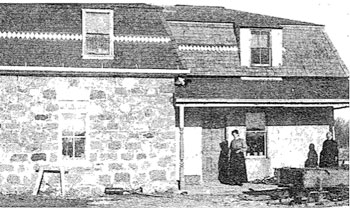 This fieldstone and mortar house, built in 1889 at the fork of the