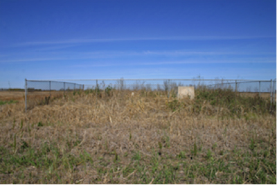 A fenced cemetery in the Municipality of Two Borders, in a farm field