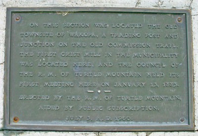 Erected by the R.M. of Turtle Mountain, aided by public subscription.