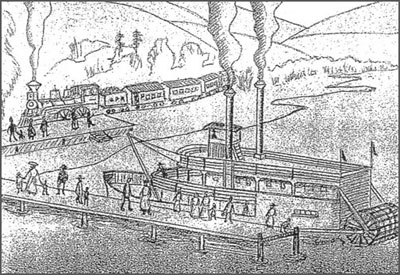 sort of seaside resort town with a town square, a steamboat landing and