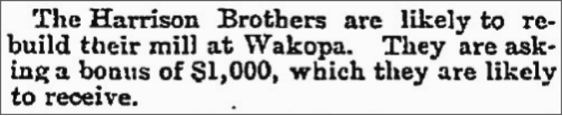 Harrison built saw and flour mills in the new village.