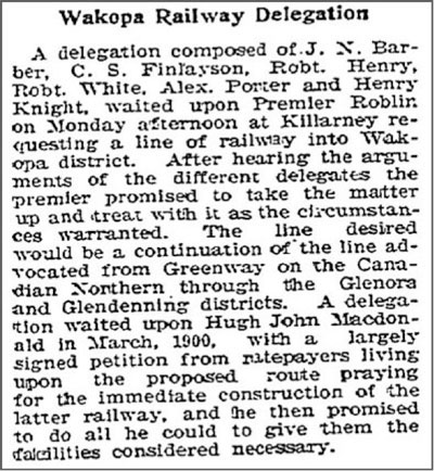 established the towns of Baldur, Belmont and Wawanesa would connect to