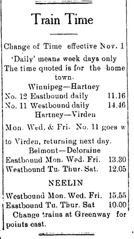 Boissevain. The rails were laid to Wakopa by 1906.
