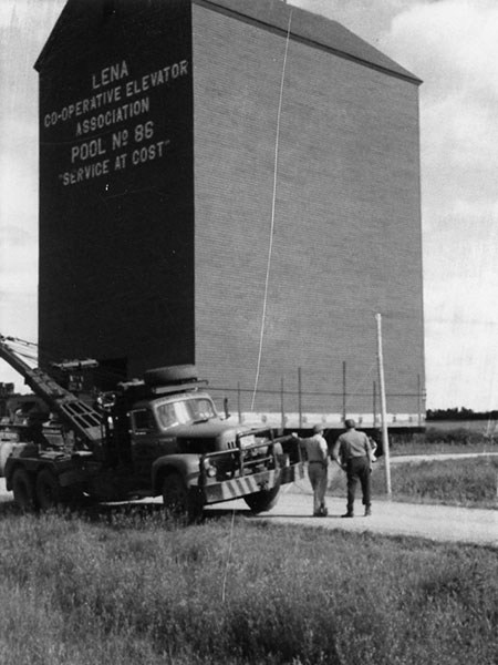 Pool grain annex at Lena being moved to Killarney by Earl Gordon