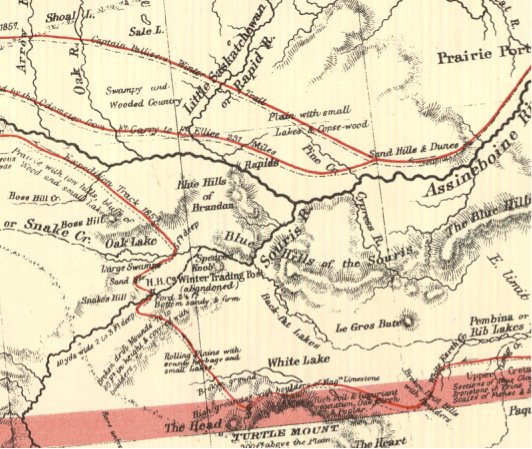 If, in 1858, one were to follow the course Souris Rivers upstream from
