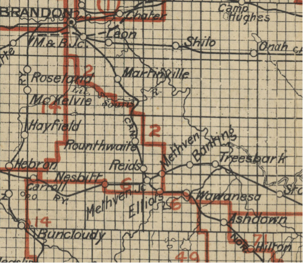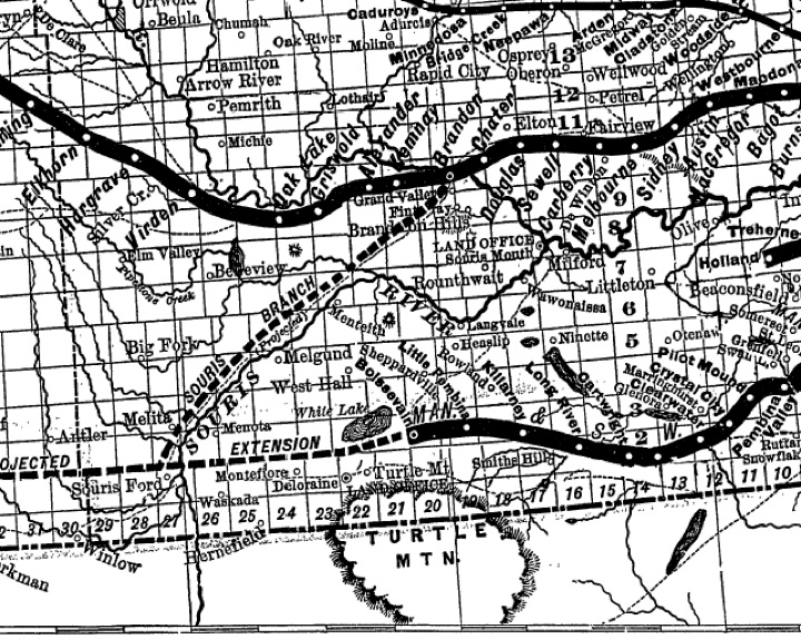 towns seen at Rapid City, Minnedosa (Tanner’s Crossing), Millford (near