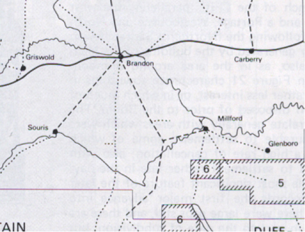 (a few kilometers east of Brandon). These locations are mentioned