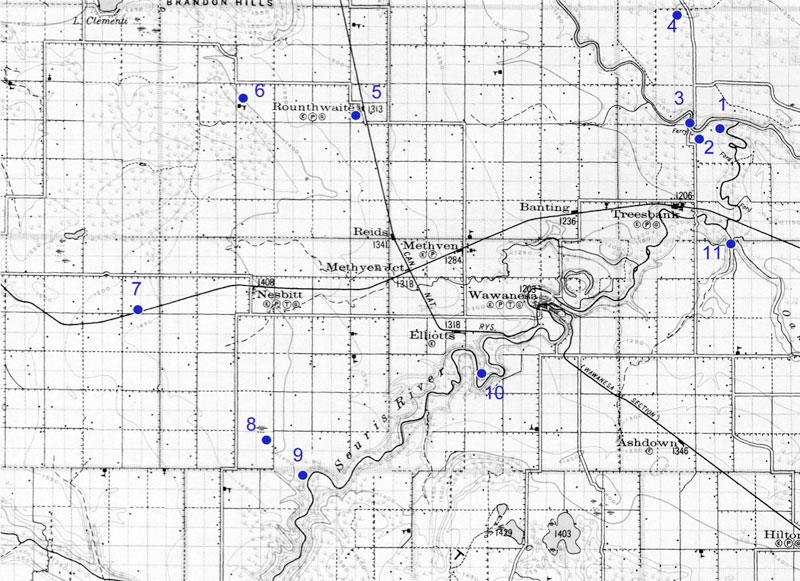 The village was relocated after 1890 to be on the Wawanesa - Brandon RR