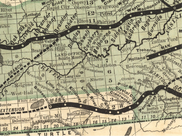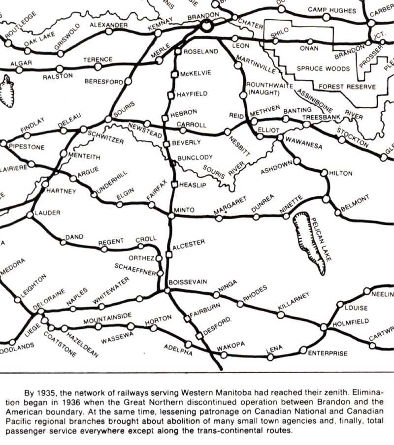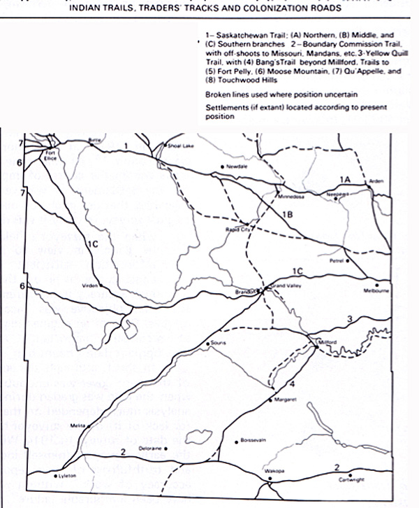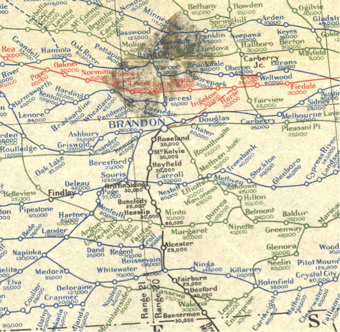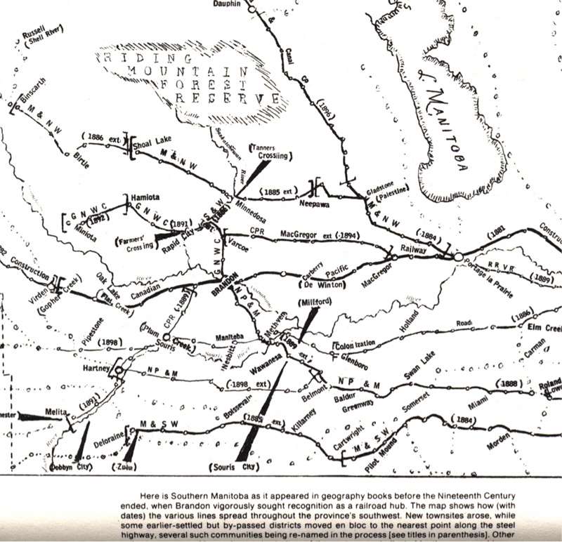 Maps / Transportation ![]() Scanned from the works of W.L Morton. Page 83 Indian Trails, Trader's Tracks and Colonization Roads ![]() By Section, Township & Range, Studies in Prairie Settlement, John Langton Tyman Brandon University, 1972 P 18 A Route For the CPR: The Alternatives ![]() By Section, Township & Range, Studies in Prairie Settlement, John Langton Tyman Brandon University, 1972 P 34 Railways - Real and Imagined 1888 ![]() By Section, Township & Range, Studies in Prairie Settlement, John Langton Tyman Brandon University, 1972 P 215 . Manitoba and the Northwest Territories of Canada Showing the Lines and Land Grant of the Canadian Pacific Railway (1886) ![]() Canadian Pacific Railway Company. Manitoba and the Northwest Territories of Canada Showing the Lines and Land Grant of the Canadian Pacific Railway (Detail from SW Mb.) Scale not given. In: Canadian Pacific Railway Company. Manitoba the Canadian North-West : Testimony of Actual Settlers. [Montreal]: Canadian Pacific Railway Company, 1886. The Company's lands in part consist of the odd-numbered sections in the belt colored green, the remaining sections being Government Homestead Lands. Image Courtesy of University of Manitoba Archives & Special Collections http://www.flickr.com/photos/manitobamaps/3858739907/ ![]() By Section, Township & Range, Studies in Prairie Settlement, John Langton Tyman Brandon University, 1972 P 52-53 ![]() Manitoba Section of Map Showing Elevators in Manitoba (7th, ed. 1917) ![]() Canada Natural Resources Intelligence Branch. [Manitoba Section of Map Showing Elevators in Manitoba, Saskatchewan and Alberta] [map]. 7th ed. 1:1,584,000. [Ottawa]: Dept. of the Interior, 1917. Elevators and Milling capacities complied from records of the Inspection Branch of the Department of Trade and Commerce, and other available sources. Legend shows rail routes (in operation and under construction) of Canadian Pacific Railway (Blue), Canadian Northern (Green) Grand Trunk Pacific (Red) and Other Railways (Black). Elevator capacities are given in bushels under each name in the respective colour of the road on which they are located. Note: Department of the Interior Canada. Honourable W.J. Roche, Minister. W.W. Cory, Deputy Minister. Map prepared in the Natural Resources Intelligence Branch under the direction of F.C.C. Lynch, Superintendent. Source: University of Manitoba : Elizabeth Dafoe Library : Map Collection http://www.flickr.com/photos/manitobamaps/2200154066/ ![]() |