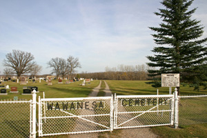Church built here in 1882 – moved with the village – now in Wawanesa at