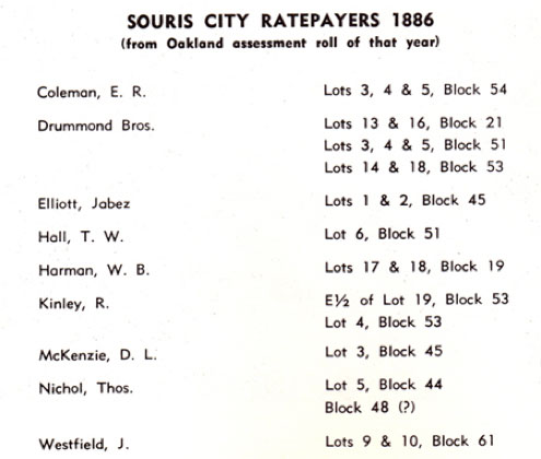 Souris City and Millford. In 1883 Glen Souris, Stockton, Langvale,
