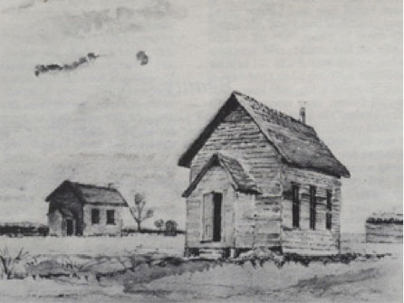 to the west in 1881 in an unfinished building on the farm of Capt.