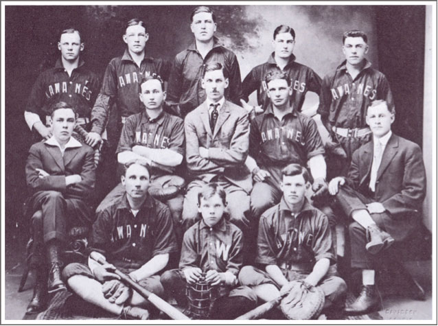 Wawanesa Hockey Team (1900) . Back Row, L. to R.:Vice President of the