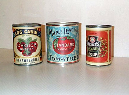 Dalnavert's Assistant Curator, Nancy Anderson, began by researching through some of the period cookbooks in the museum's collection in order to create a list of commonly used ingredients. Period catalogues gave an idea of the range of food products available commercially and some of the more popular brand names. Did you know that catsup came in grape, walnut, and mushroom flavours? This information was coupled with a report on beverage consumption in Winnipeg, previously prepared by Virginia Lockett. The shopping list was then taken to the Western Canada Service Centre where Ms. Lockett assisted with the selection of labels appropriate to the period of Dalnavert. The next step has been to acquire packaging of the correct size to be relabeled. For example, the Heinz tomato soup label fits nicely on a 14 oz. can of kidney beans, not the 10 oz size that soup generally comes in today. Measuring cans does elicit some odd looks at the grocery store and these days the menu at the Anderson household is determined, in part, by can size. Keep watching for ongoing additions.