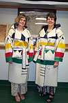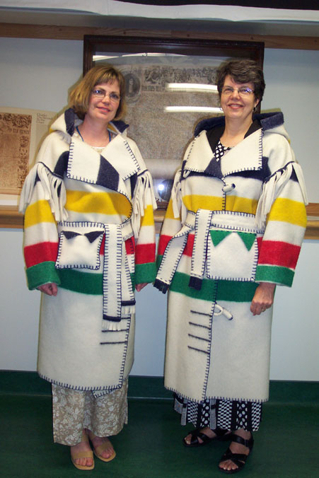 The lucky ticket in the draw for the HBC capote was Maureen Dolyniuk's, Chief of the Hudson's Bay Company Archives. You can see from the photograph taken inside the HBCA vault that the coat is a perfect fit. Maureen will have many appropriate occasions to wear the capote. The Hudson's Bay Company donated the blanket and Judith Hudson Beattie sewed it into a capote. Thanks to the help of Gordon Goldsborough in designing and printing the tickets, and the efforts of Council members in selling them, the Manitoba Historical Society made $1,142, to be applied to the Young Historians award program. Thanks go to all who participated, and especially to those who bought tickets. |