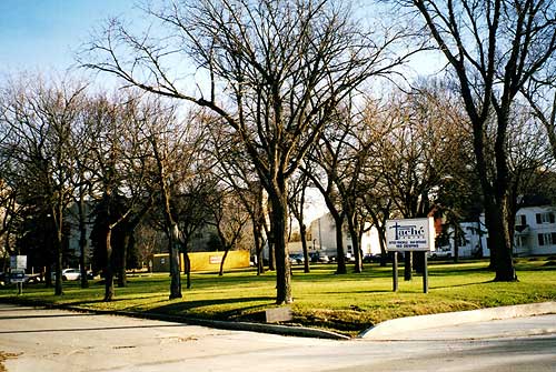 The Grey Nuns recently closed down their Winnipeg operations, and transferred their real estate assets to others. One of these assets was the green space just north of the St. Boniface Museum. For much of the last century, this space had been occupied by the Grey Nuns' Hospice, a place for sheltered accommodation of the elderly, but in 1970 this building was demolished, and replaced by another structure behind the Museum. Since 1970, then, the space between the Museum and the Cathedral cemetery has had the aspect of a well-treed park, linking the Museum grounds with the Cathedral precinct itself. Most people would have assumed that this space was part of the Museum grounds, or perhaps a public park.