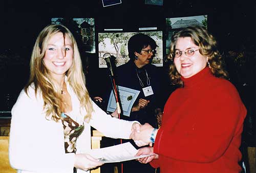 Irene Shaw presents the Dr. Edward Shaw Award to Kimberley Halwas of Portage Collegiate.