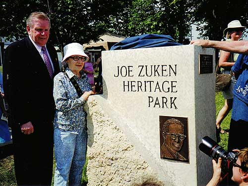 Canada Day, at Ross House Museum in Joe Zuken Park, this year featured a special program on the unveiling of a bronze plaque in commemoration of Joseph Zuken’s 42-year record of service to the city of Winnipeg, first as a school board member and then as an alderman and city councilor. His Honour John Harvard, Lieutenant Governor of Manitoba, presided at the unveiling of the plaque, together with Clara Zuken, Joe Zuken’s widow.