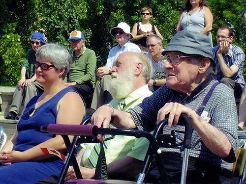 Harry Duckwoth, MHS vice president, served as MC (pinch hitting for president Jack Bumsted who was ill). Neil Cohen, chair of the Zuken Memorial Association expressed thanks to everyone in closing the program. Sponsors included the Jewish Foundation of Manitoba, the Winnipeg Foundation, the Manitoba Heritage Grants Program, the Winnipeg Per Capita Grant Program, the Zuken Memorial Association, the Canada Day Fund, CUPE Manitoba, and several private donors. The annual barbecue and Canada birthday cake then followed.