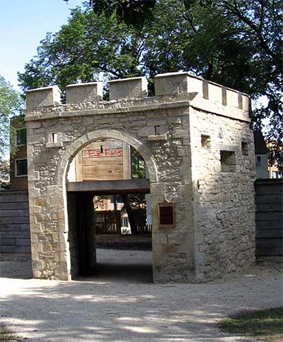 With care and repairs ignored for many decades it wasn’t until 1983 that funds ($160,000) were found in a cost shared federal/provincial split to again restore the Gate, upgrade the interpretative signs and erect the replica wooden wall that currently exists in proximity to the Gate. Since then the Gate has still suffered from neglect, the walls and gate-tower having been scaled by modern day rebellious youth – “taggers” – who left their marks in numerous places.